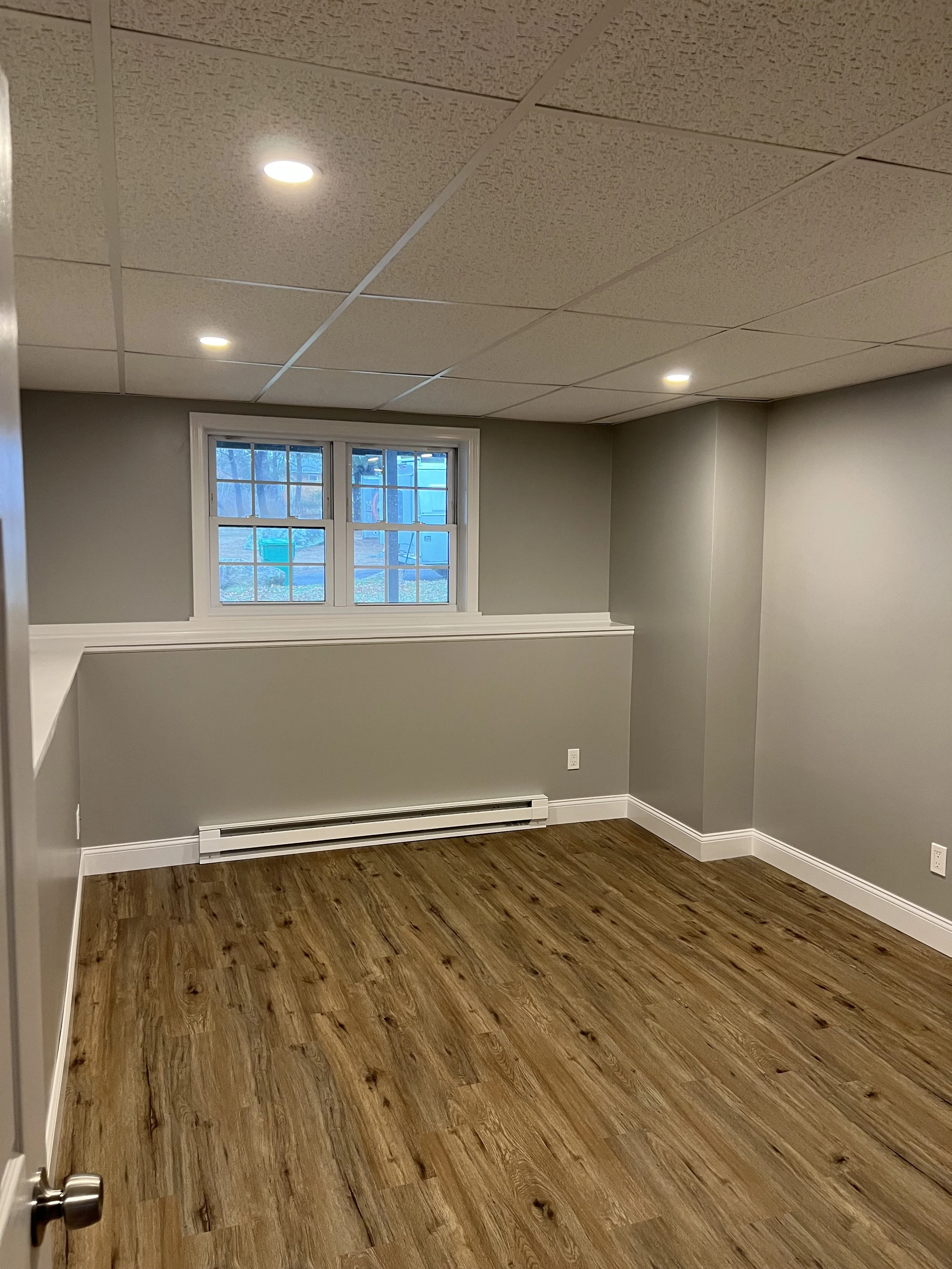 Click on a picture below to learn more about each project Basement Gallery Doors, Trim, and Paint Bedroom Renovation Basement Room Bathroom Renovation Engineered Hardwoods