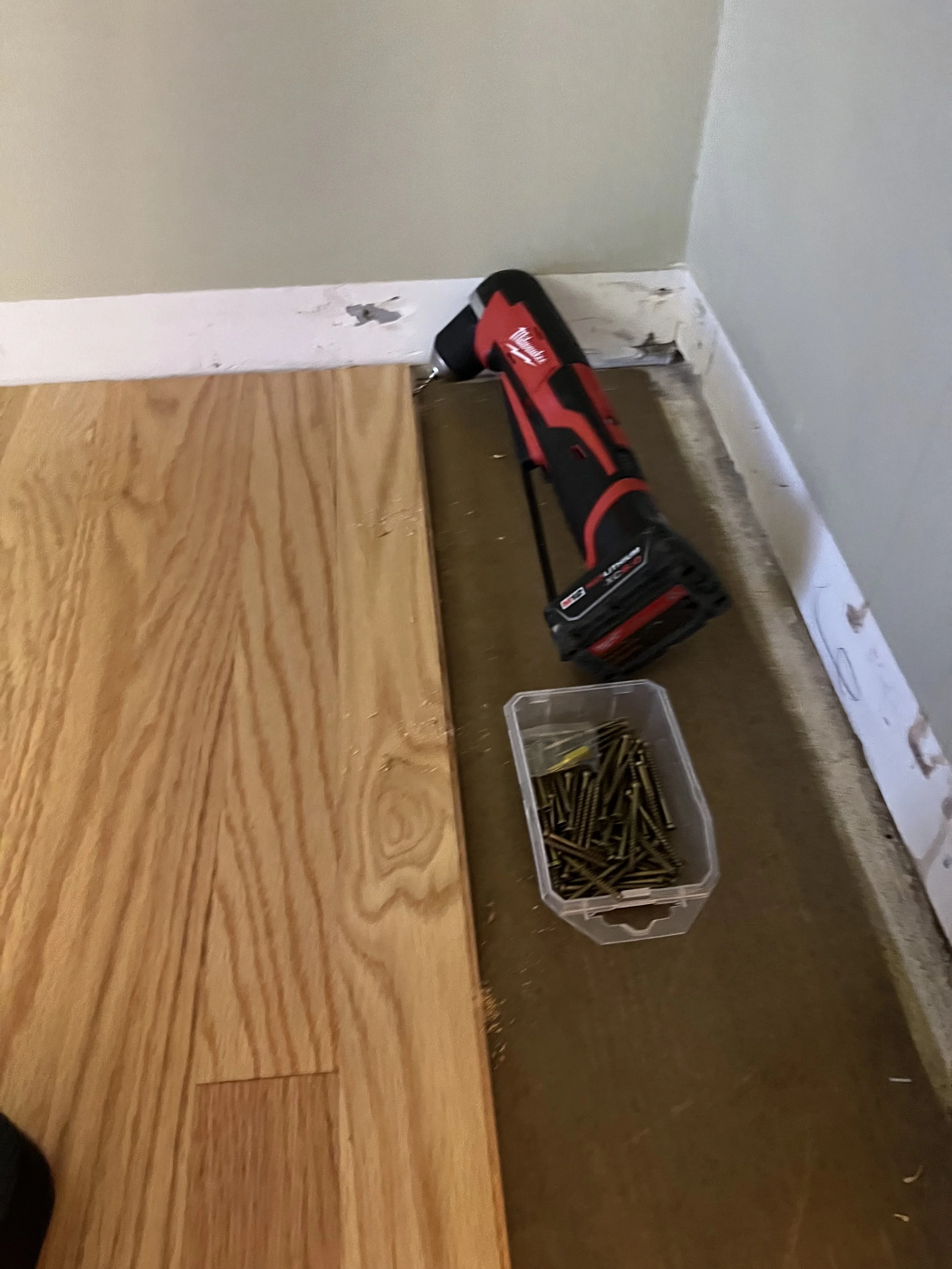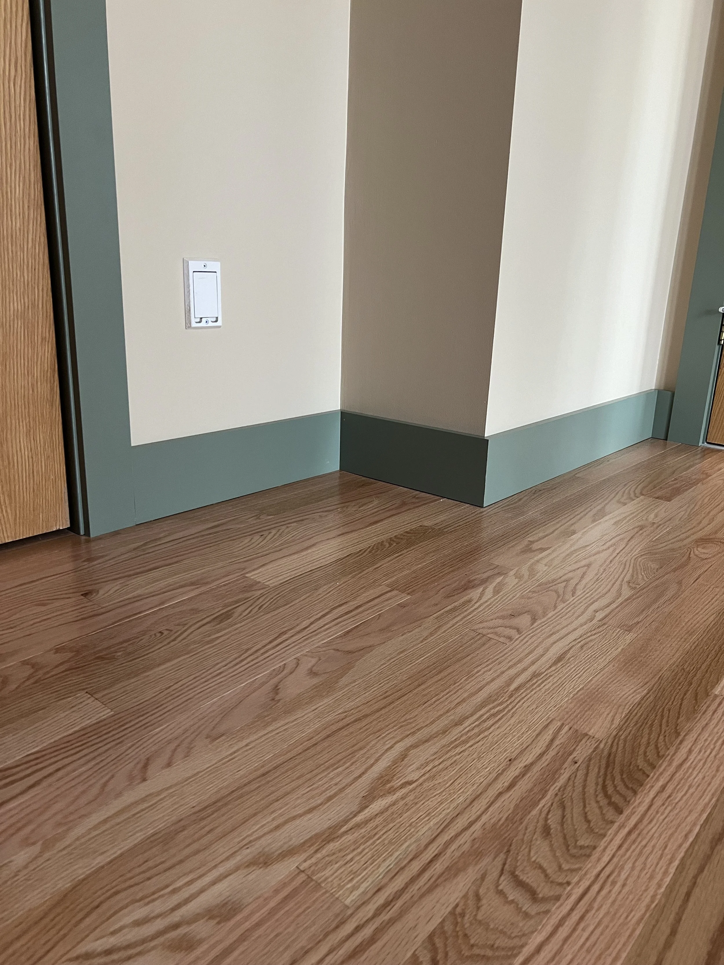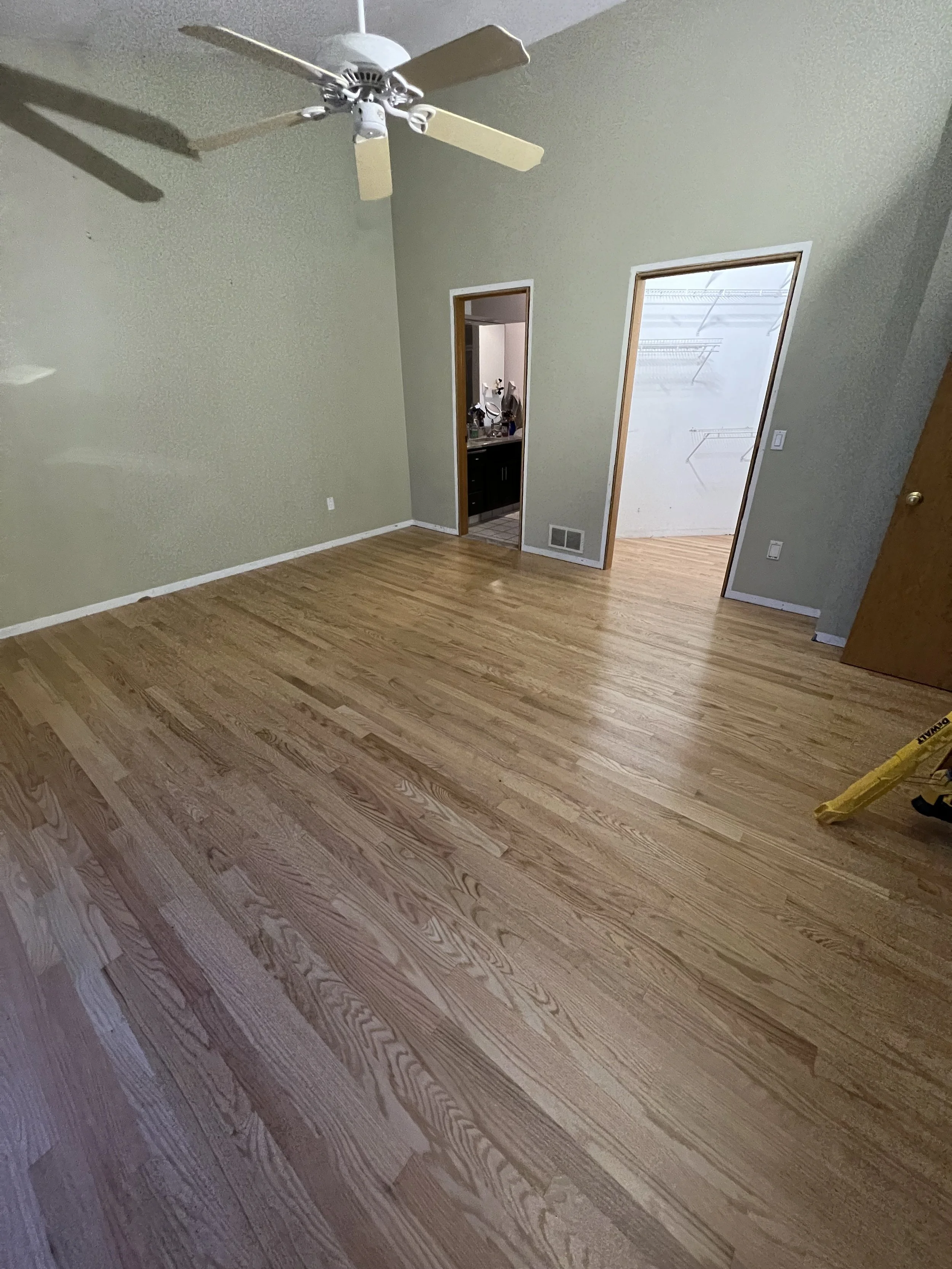 This project checked all of the boxes of modernization. We removed all carpeting, staples, and trim to provide a clean slate to transform. Once all the dust was collected we installed new pre-finished square edge hardwood flooring, new trim and a farmhouse inspired accent wall. We were delighted to complete this project and hand the room back over to the homeowners.